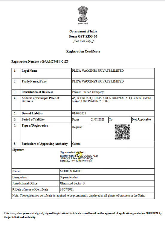 Registration Certificate