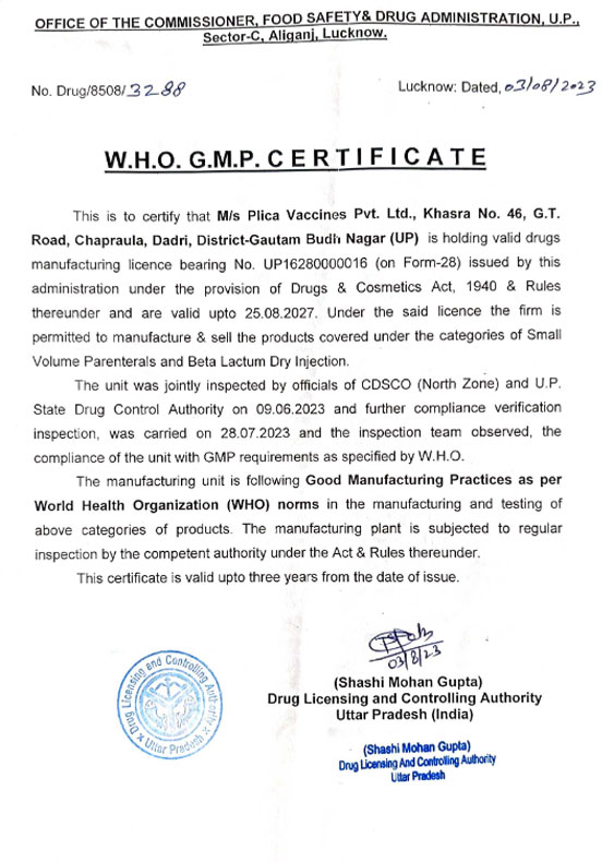 WHO GMP CERTIFICATE